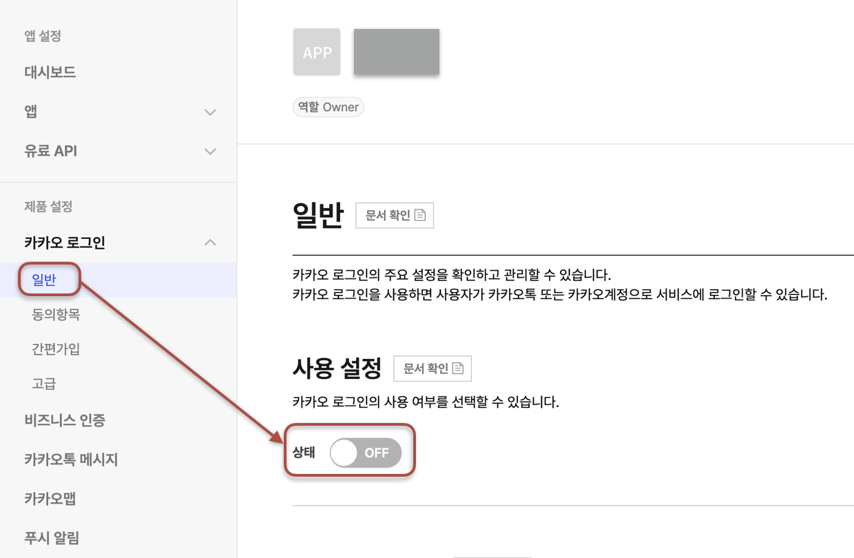 시작하기에 앞서, Kakao Developer 홈페이지 들어가서 로그인 한 뒤 아래와 같이 콘솔 셋팅을 먼저 해주어야합니다.