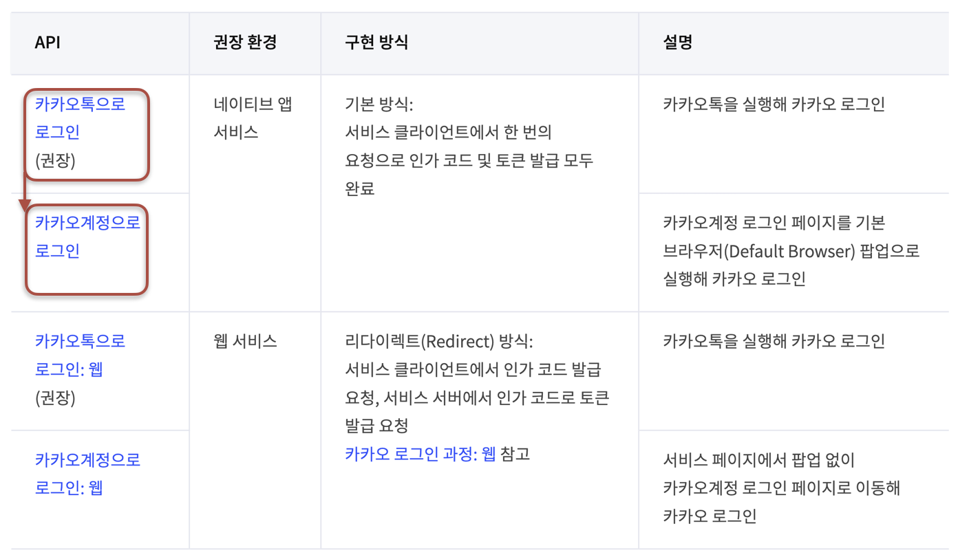 즉, 카카오톡이 실행 가능한 환경에서는 카카오톡으로 로그인하고, 카카오톡에 연결된 계정이 없는 경우 카카오 계정으로 로그인하도록 할 예정입니다.